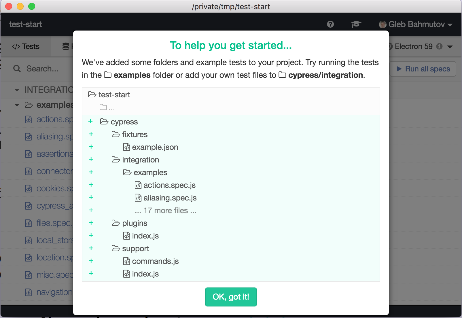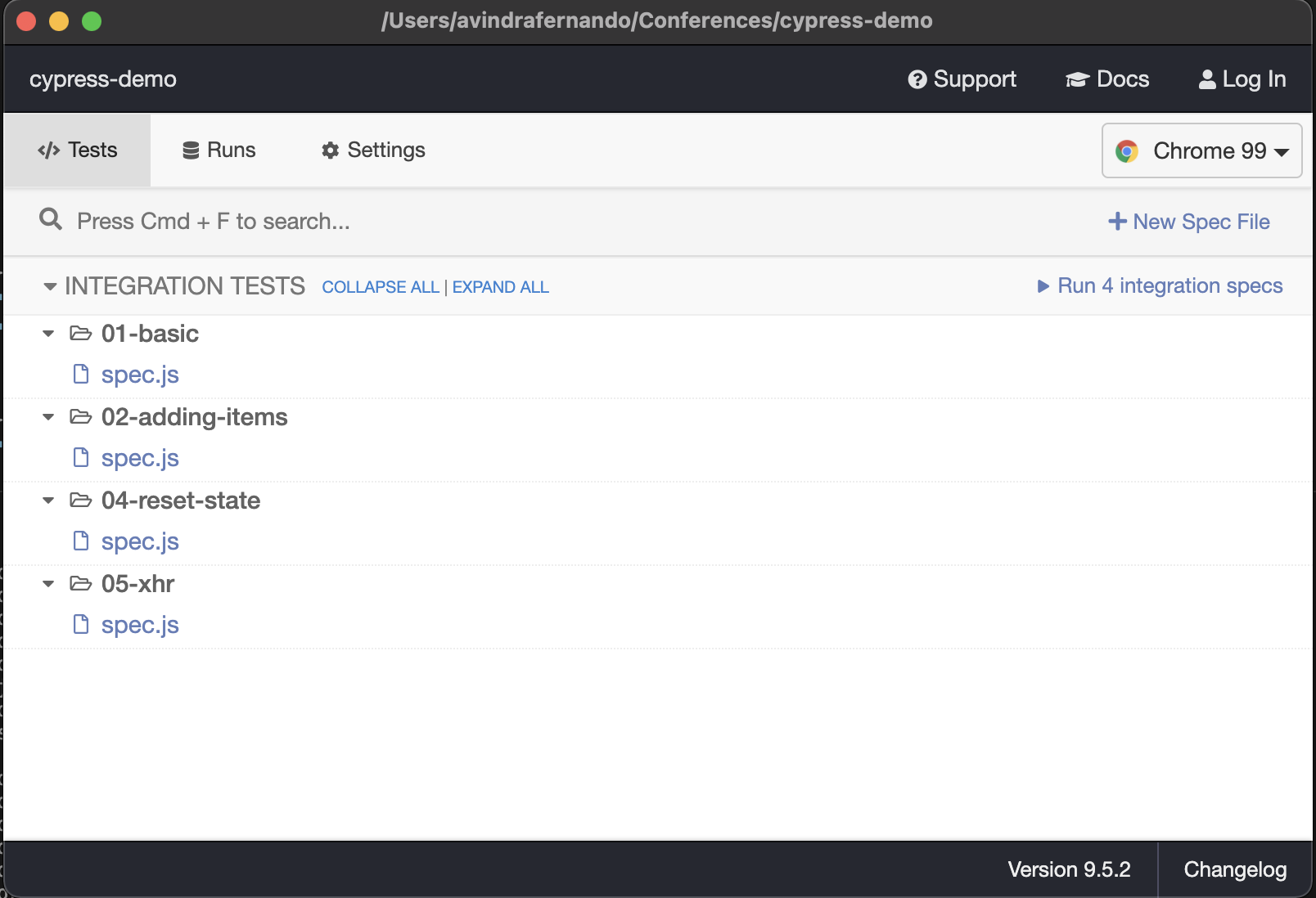 π cypress/integrationΒ - test files (specs)